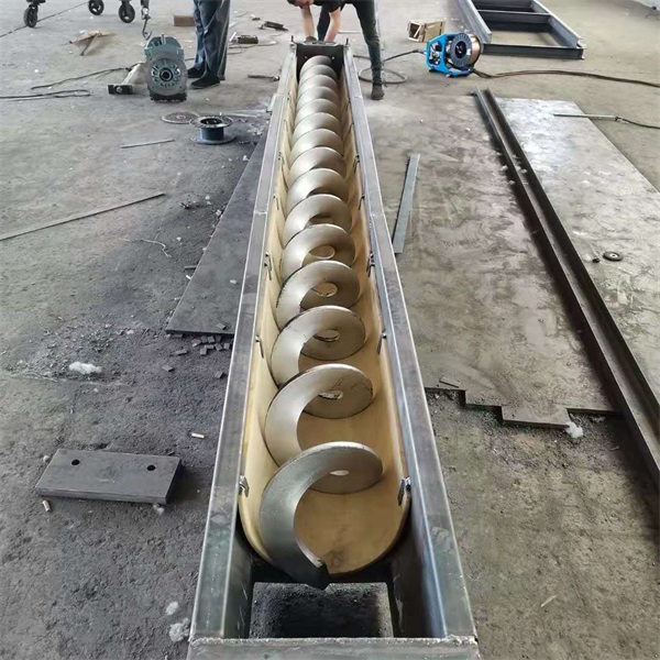 螺旋输送机是一种利用电机带动螺旋回转,推移物料以实现输送目的的机械。它能水平、倾斜或垂直输送,具有结构简单、横截面积小、密封性好、操作方便、维修容易、便于封闭运输等优点。螺旋输送机在输送形式上分为有轴螺旋输送机和无轴螺旋输送机两种,在外型上分为U型螺旋输送机和管式螺旋输送机。有轴螺旋输送机适用于无粘性的干粉物料和小颗粒物料.(例如:水泥、粉煤灰、石灰、粮等)而无轴螺旋输送机适合输送机由粘性的和易缠绕的物料。(例如:污泥、生物质、垃圾等)螺旋输送机的工作原理是旋转的螺旋叶片将物料推移而进行螺旋输送机输送,使物料不与螺旋输送机叶片一起旋转的力是物料自身重量和螺旋输送机机壳对物料的摩擦阻力。螺旋输送机旋转轴上焊的螺旋叶片,叶片的面型根据输送物料的不同有实体面型、带式面型、叶片面型等型式。螺旋输送机的螺旋轴在物料运动方向的终端有止推轴承以随物料给螺旋的轴向反力,在机长较长时,应加中间吊挂轴承。